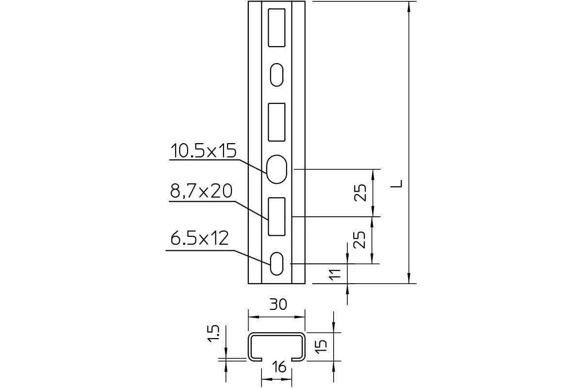 Перфорированная профильная рейка со шлицем шириной 16 мм. Перфорированная профильная рейка со шлицем шириной 16 мм. Перфорированная профильная рейка со шлицем шириной 16 мм.** Поставляется поштучно.