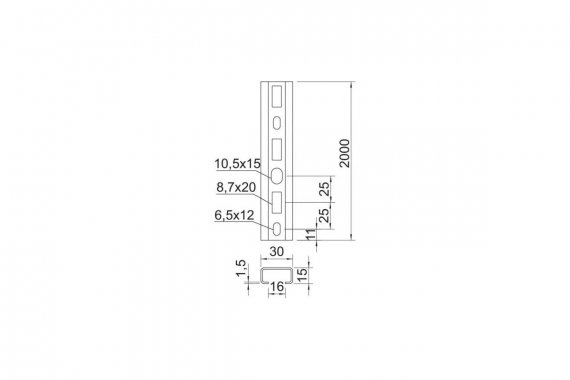 Перфорированная профильная рейка со шлицем шириной 16 мм. Перфорированная профильная рейка со шлицем шириной 16 мм. Перфорированная профильная рейка со шлицем шириной 16 мм.** Поставляется поштучно.