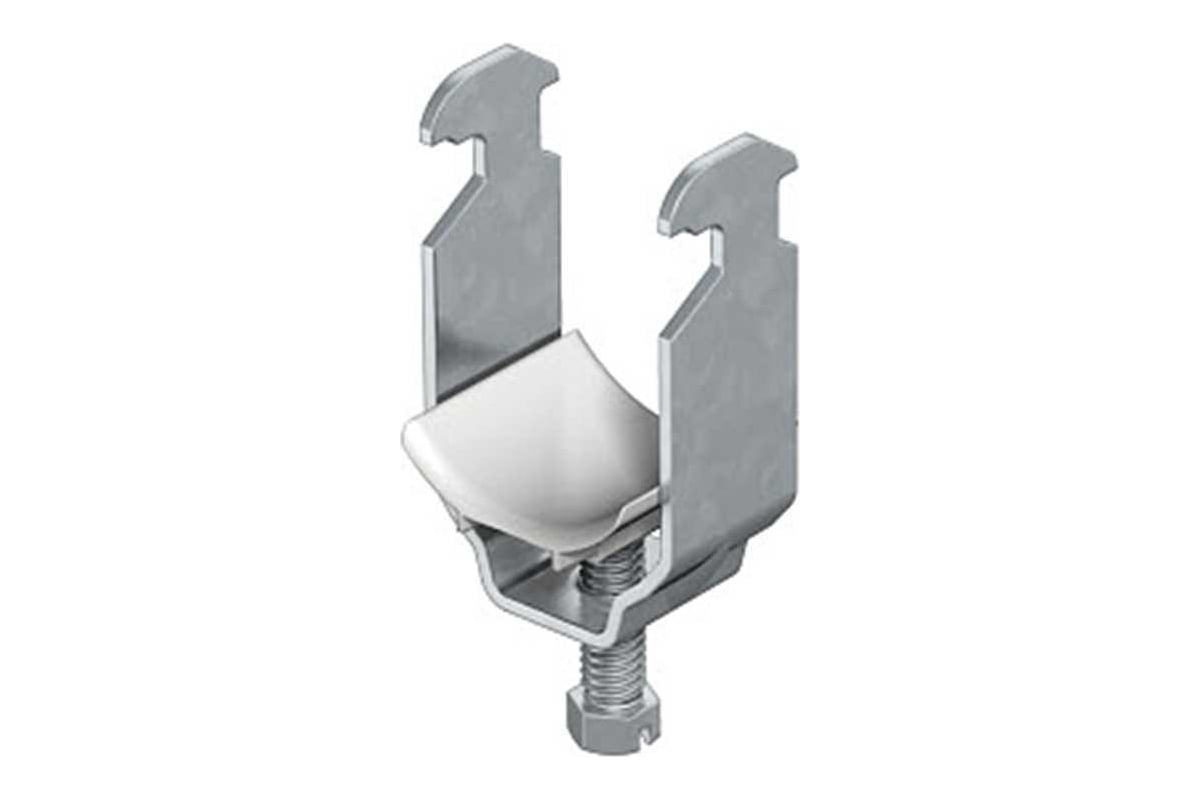 Подходит также для всех профильных реек С со шлицем шириной 16-17 мм.Скоба и винт из стали горячего цинкования, полипропиленовая прижимная пластина, не содержит галогенов, светло-серая RAL 7035.