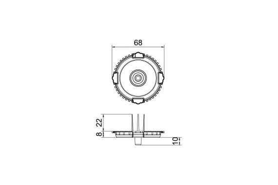 Крышка для защиты монтажной коробки для скрытой установки при нанесении штукатурки. Крышка красного цвета с сигнальными щетинками для определения положения, с устройством для центрирования буровой коронки, накладками для снятия.