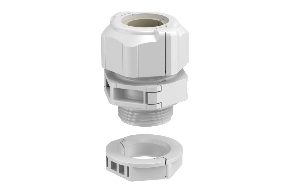 Разъемный кабельный ввод V-TEC TB.., как и все кабельные вводы V-TEC, обеспечивает надежное уплотнение кабеля. Прокладка, например, предварительно собранных кабелей или функциональных линий благодаря разъемному кабельному вводу осуществляется легко