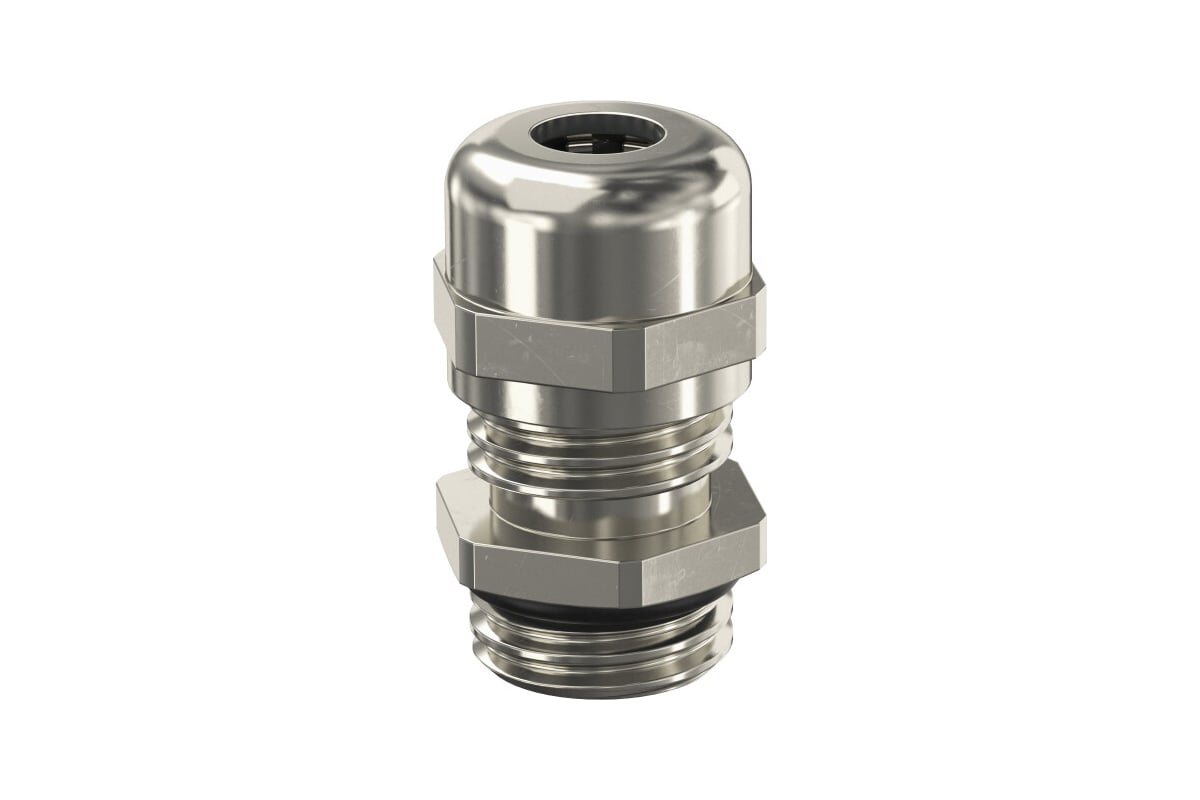 Жесткий кабельный ввод с метрической соединительной резьбой по IEC 423 в конструкции с глухой гайкой для высоких требований герметичности Разгрузка от натяжения, защита от прокручивания и герметичность по всей области зажима. Уплотнительное кольцо