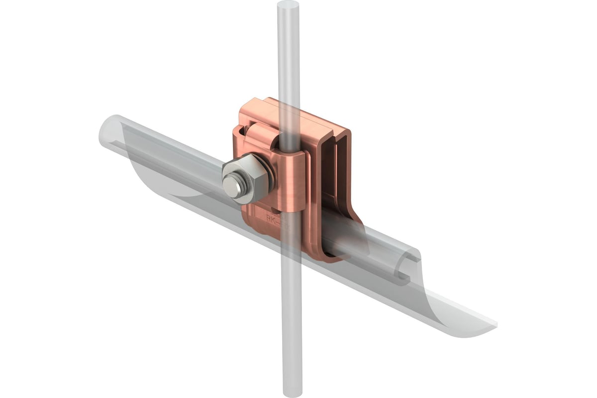 Крепеж проволоки к водосточному желобу для крепления 2 круглых проводников Rd 6 или Rd 8. Подходит для любой толщины борта (15–25 мм).