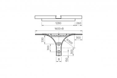 Дополнительные характеристики: Размер В - 400 мм. Высота боковой стенки - 110 мм. * Поверхность согласно DIN - DIN EN ISO 1461. Т-образное/крестовое соединение для горизонтального монтажа кабельных лотков