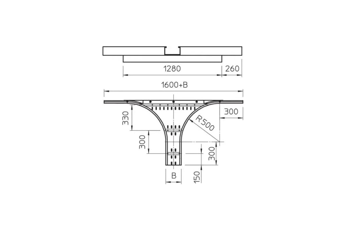 Т-образное/крестовое соединение для горизонтального и вертикального монтажа. Для всех листовых кабельных лотков для больших расстояний с высотой боковой стенки 160 мм.