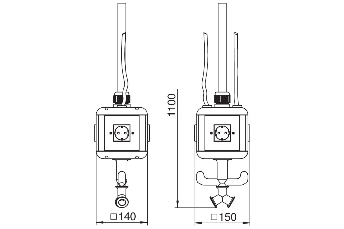 В следующей комплектации: 4 одинарных розетки с защитным контактом. 16 A/250 В с повышенной защитой прикосновения, с предварительной разводкой на 2 цепи переменного тока, подключение через 2 3-полюсные клеммы, с перегородкой для отделения цепи силового тока.Корпус графитно-черный, RAL 9011.