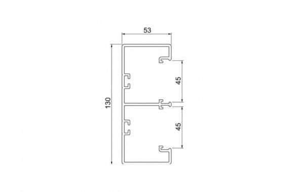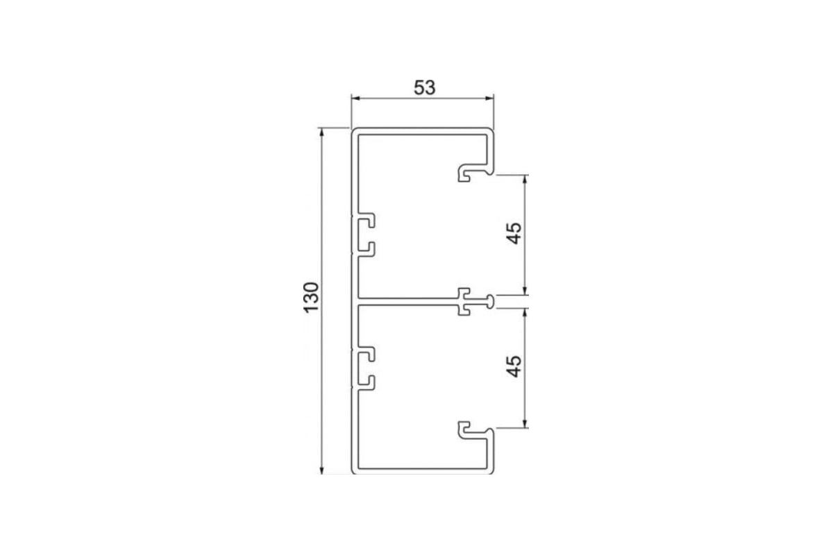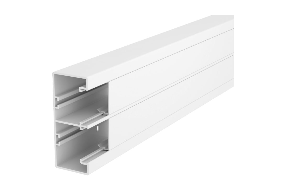 Кабельный канал (кабель-канал, короб) серии "Rapid 45-2", поставляется в комплекте с 2 крышками. Размер 53x130x2000 мм. Электроустановочные изделия (розетки) размером 45х45 мм (в том числе ЭУИ серии "Modul45" артикул 6120008 или 6120073)