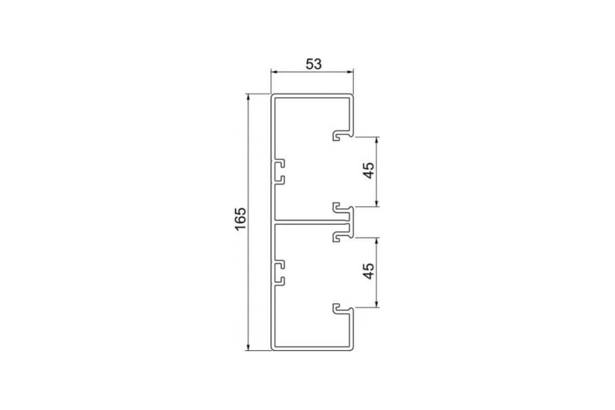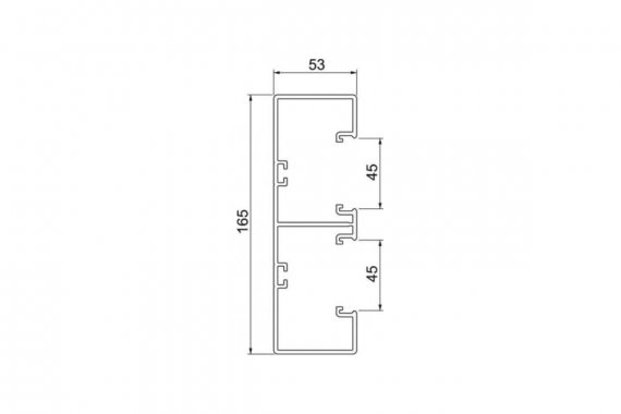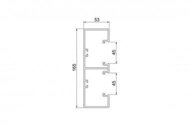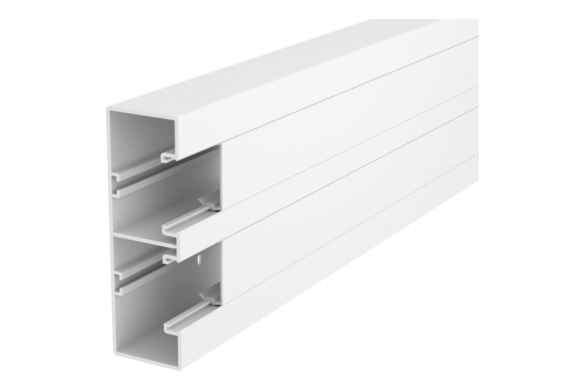 Кабельный канал (кабель-канал, короб) серии "Rapid 45-2", поставляется в комплекте с 2 крышками. Размер 53x165x2000 мм. Электроустановочные изделия (розетки) размером 45х45мм (в том числе ЭУИ серии "Modul45" артикул 6120008 или 6120073)