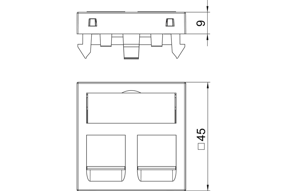 Корпус компьютерной розетки с наклонным кабельным выводом, без шторок, для крепления двух телекоммуникационных модулей с гнездом RJ45. Установочный размер изделия: 45х45 мм. Pастровое крепление подходит для вертикального и горизонтального монтажа в системном отверстии. Тип С имеет монтажное отверстие с размерами 19,30х14,80 мм и предназначен для непосредственного крепления модулей подключения к системам передачи данных в монтажном отверстии.