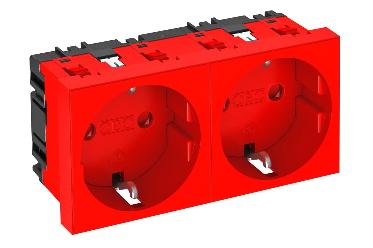 Розетка 2-м 2мод. STD-D0 SRO2 16А 250В 33град. 45х45 с заземл. защ. шторки красн. OBO 6120028