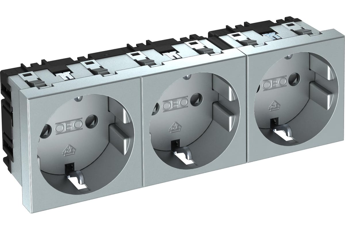 Розетка 3-м 3мод. STD-D0 AL3 16А 250В 0град. с заземл. защ. шторки алюм. OBO 6120052