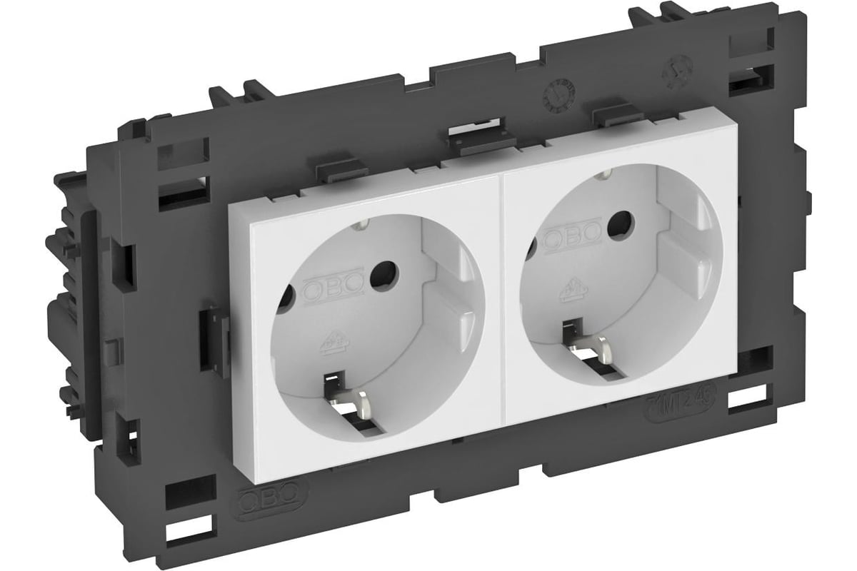 Розетка 2-м 0град. Modul45connect с заземл. 250В 16А бел. OBO 6120432