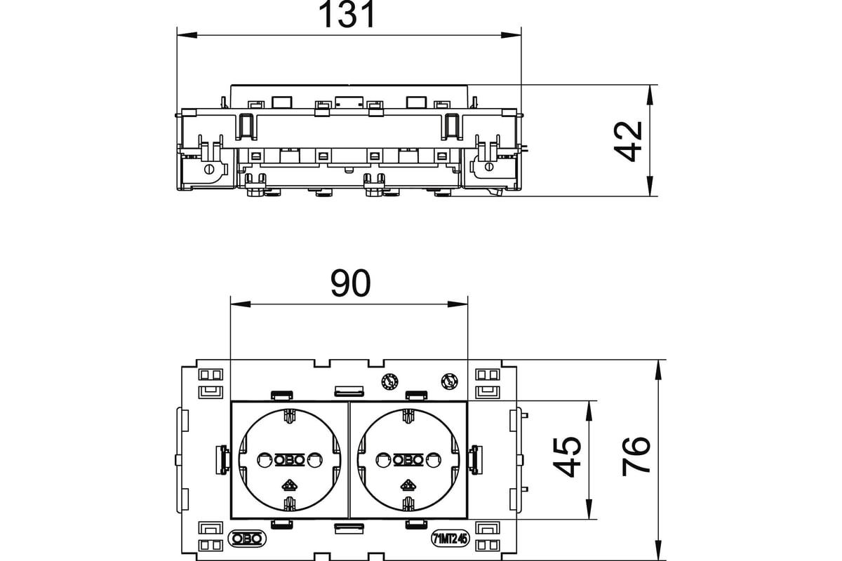 OBO-Bettermann 6120432 Розетка 2-м 0град. Modul45connect с заземл. 250В 16А