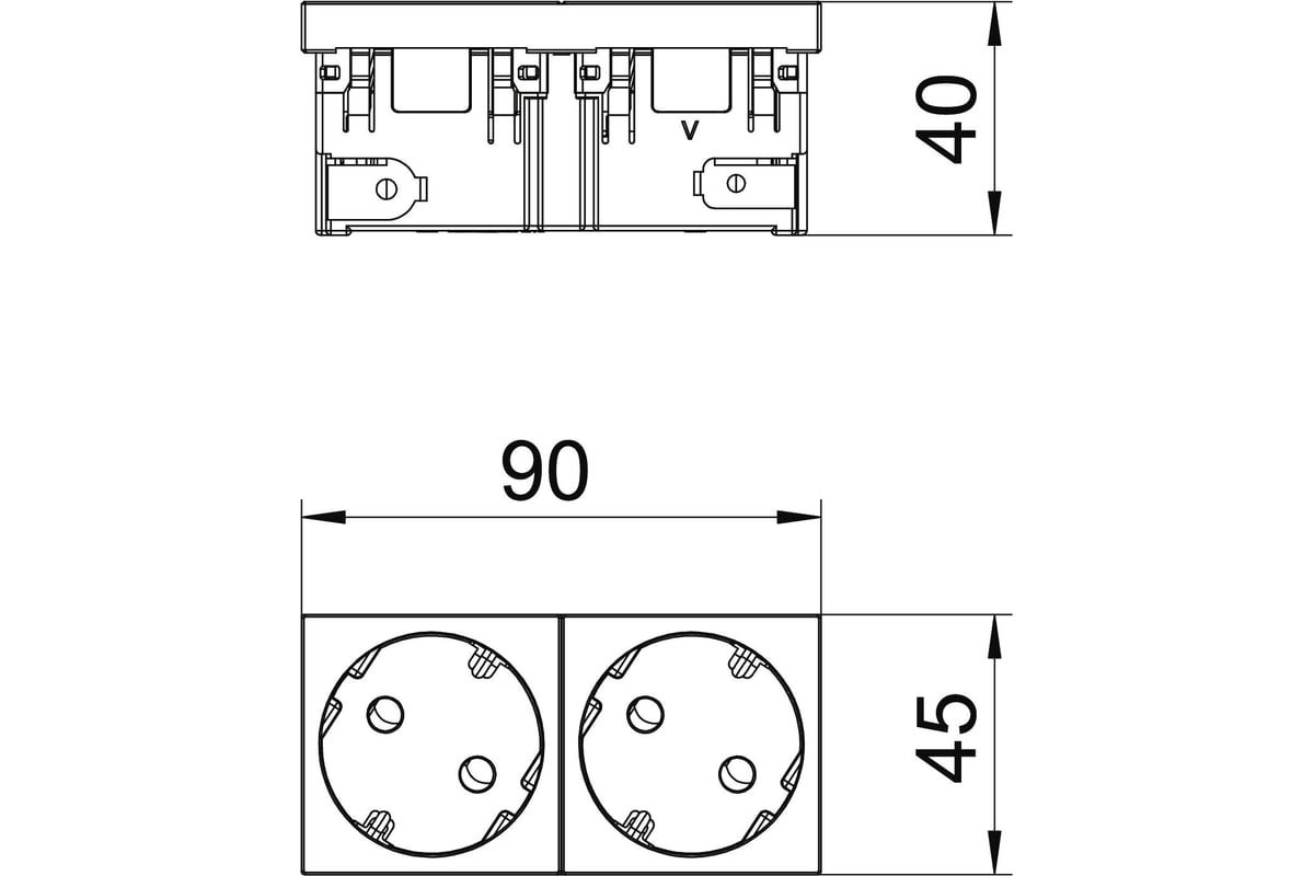OBO-Bettermann 6120489 Розетка силовая 33град. двойн. 2х2К+З Modul45connect