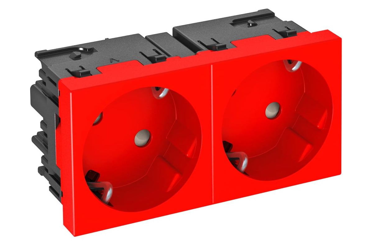 Розетка силовая 33град. двойн. 2х2К+З Modul45connect со шторками 16А 250В красн. OBO 6120489