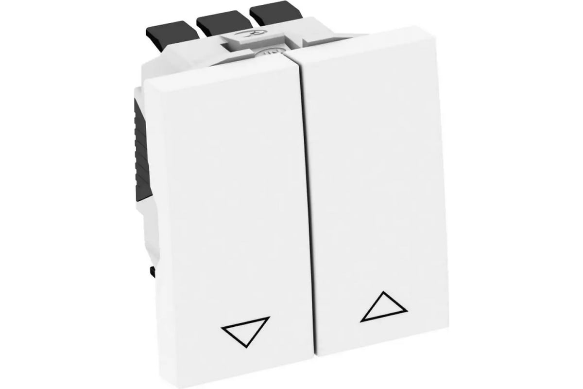 OBO Bettermann Выключатель для рольставней, двухклавишный, 1-полюсный, 10A, 250В, 1 модуль Modul45, 45x45 мм, белый 6120950 Переключатель жалюзис электрической и механической блокировкой, 1-полюсный, 10 A, 250 V~, с клеммами.