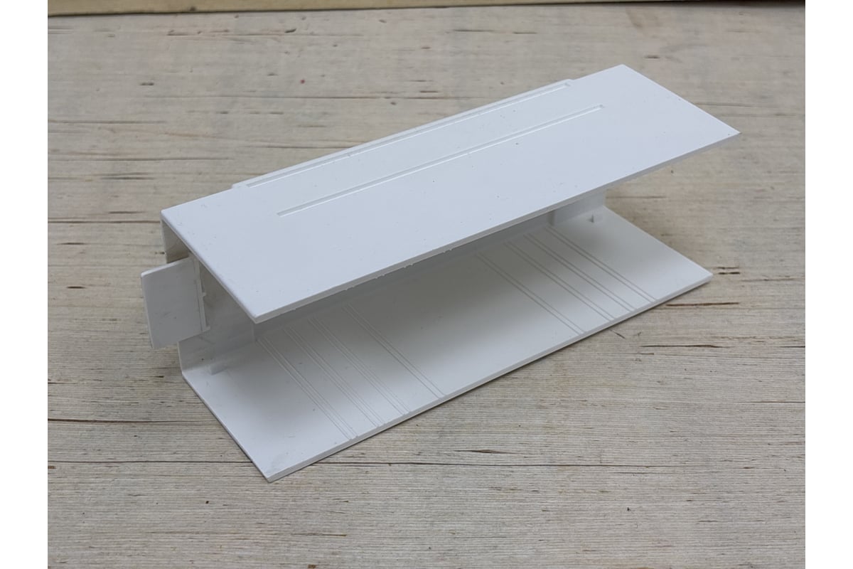 Крышка Т-образной и крестообразной секций для изменения направления короба WDK. Фасонная деталь предварительно перфорирована сбоку для соединения коробов с различными поперечными сечениями. Аксессуары для коробов выполнены в виде накладных деталей (крышек).