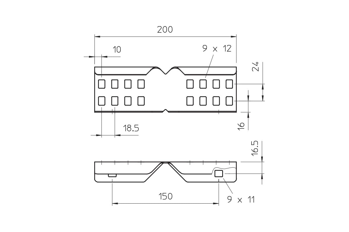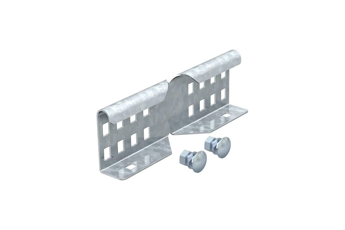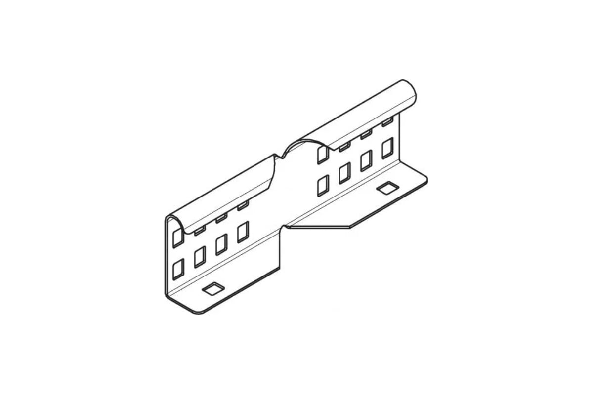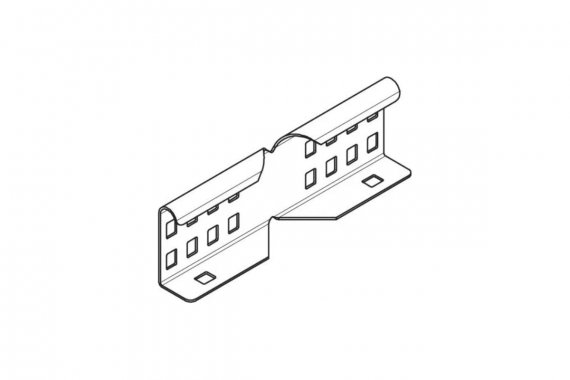 Угловой соединитель для внешнего крепления кабельных лотков лестничного типа и фасонных деталей с боковой стенкой высотой 60 мм и сквозной перфорацией.