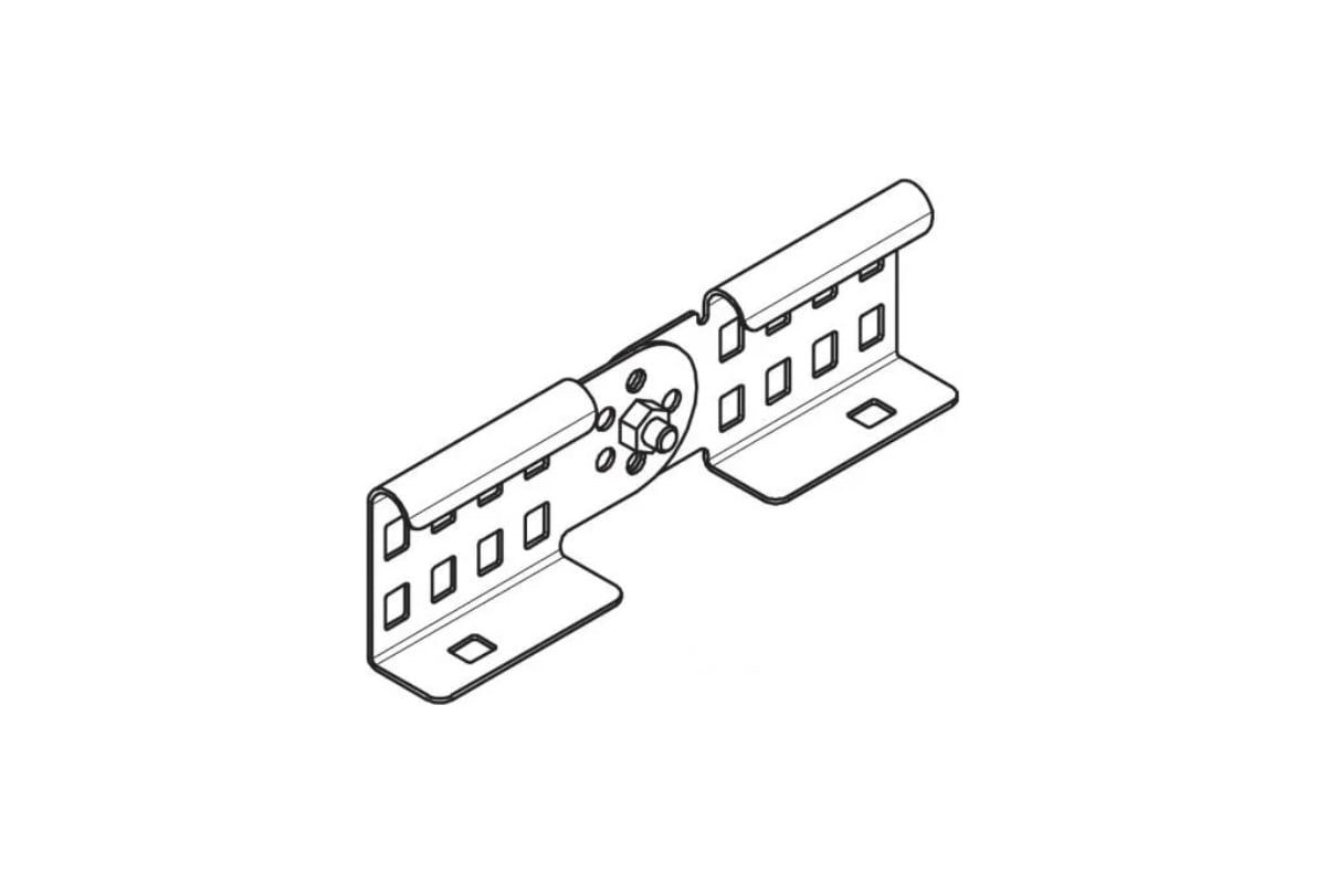 Шарнирный соединитель выступает в качестве внешнего крепления для фиксации кабельных лотков лестничного типа и фасонных деталей с высотой боковой стенки 60 мм и сквозной перфорацией стенки. Уголки регулируются по вертикали.