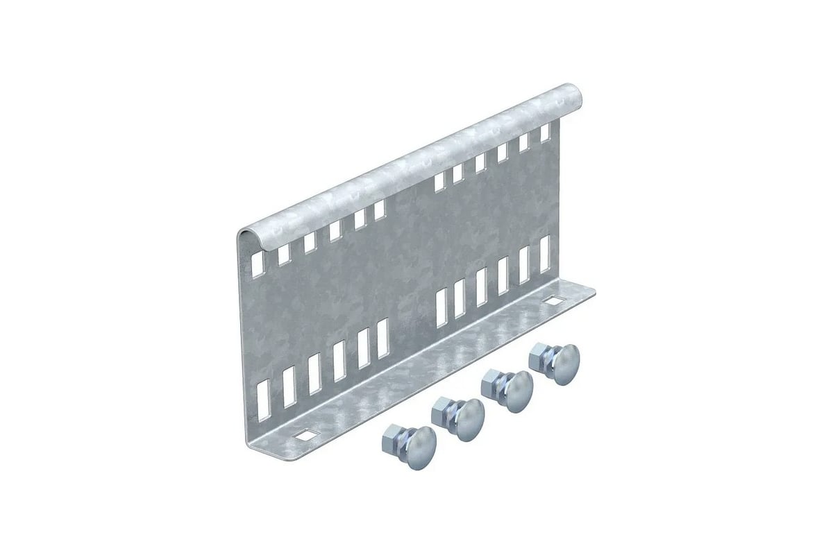 Продольный соединитель для внешнего крепления, для фиксации кабельных лотков лестничного типа и фасонных деталей с боковой стенкой высотой 110 мм и сквозной перфорацией.