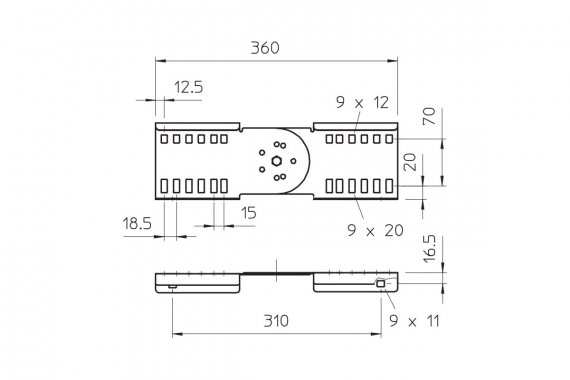 Шарнирный соединитель выступает в качестве внешнего крепления для фиксации кабельных лотков лестничного типа и фасонных деталей с высотой боковой стенки 110 мм и сквозной перфорацией стенки. Уголки регулируются по вертикали.