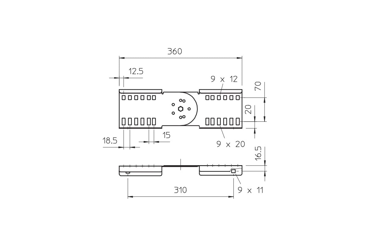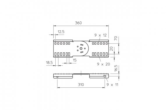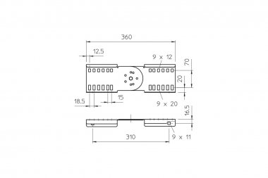 Шарнирный соединитель выступает в качестве внешнего крепления для фиксации кабельных лотков лестничного типа и фасонных деталей с высотой боковой стенки 110 мм и сквозной перфорацией стенки. Уголки регулируются по вертикали.