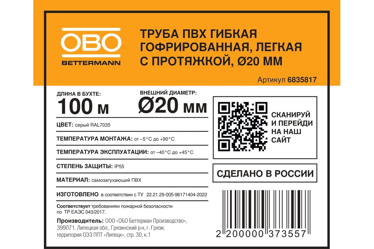 OBO-Bettermann 6835817 Труба гибкая ПВХ гофрированная легкая d20мм L500