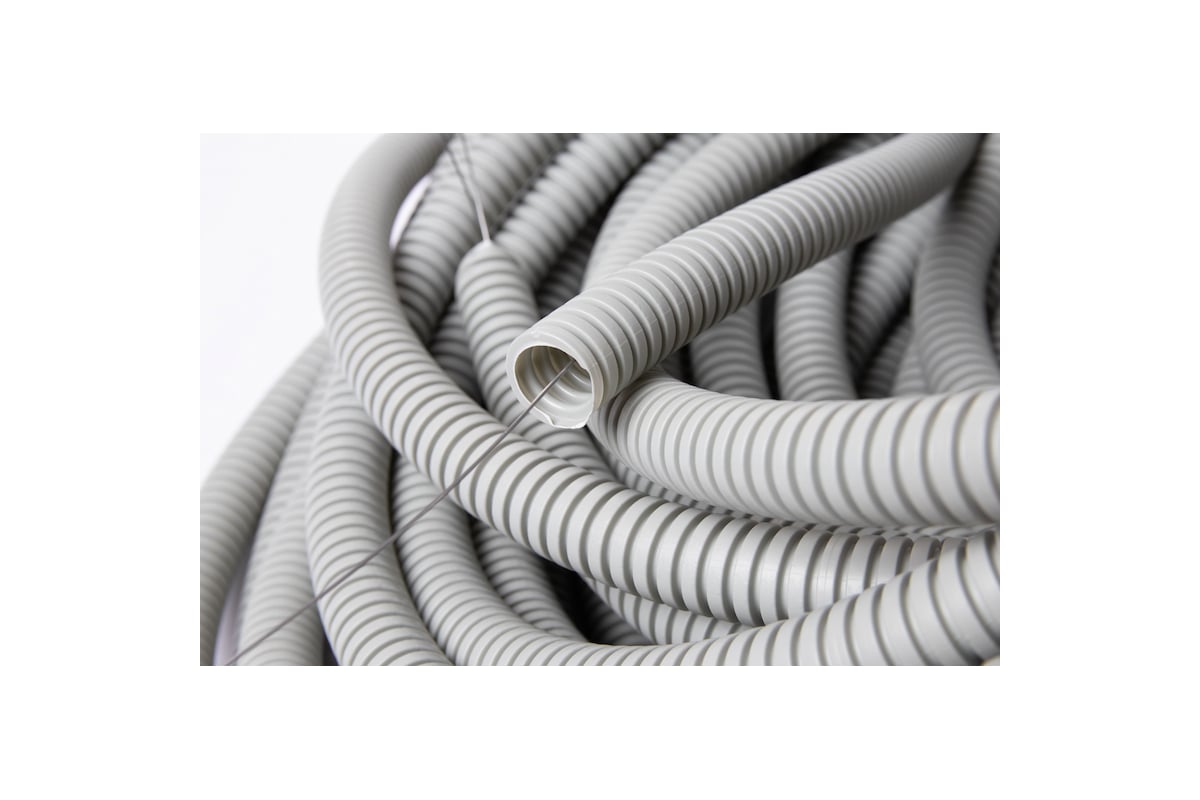 Гофрированная труба из ПВХ подходит для защиты изолированных проводов и кабелей от механических повреждений и агрессивного воздействия окружающей среды. Материал изготовления - ПВХ пластикат, препятствует возгоранию изделия.