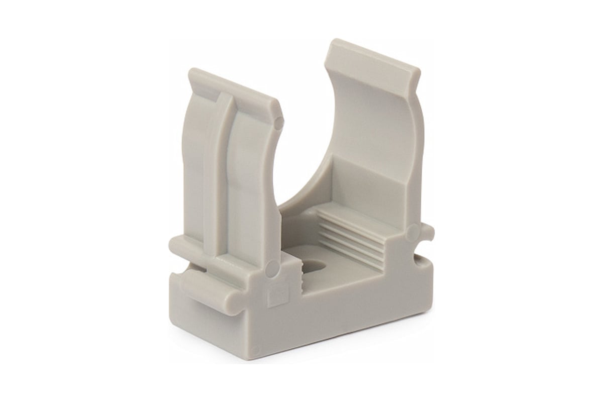 Держатель-клипса для быстрого монтажа с помощью газового монтажного пистолета. Предназначена для крепления жестких гладких и гофрированных труб к поверхности стен, потолков, полов и перегородок.