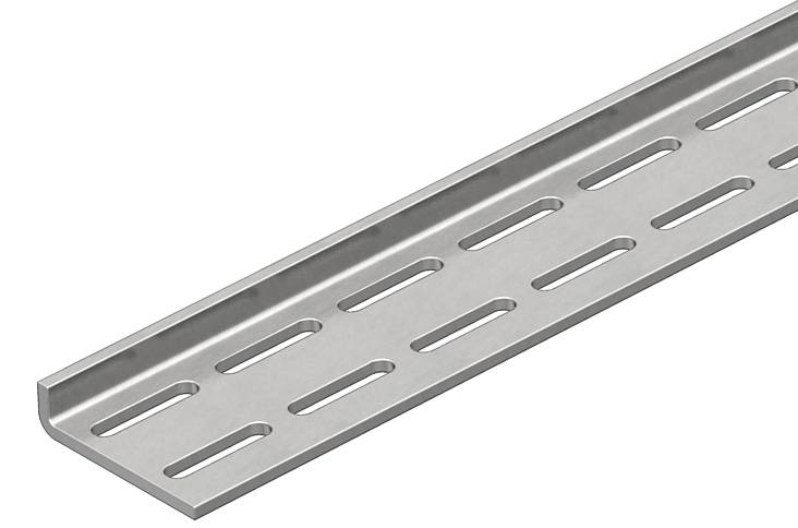 Уголковый профиль с двойным рядом продольных отверстий для создания подвесных и несущих конструкций.