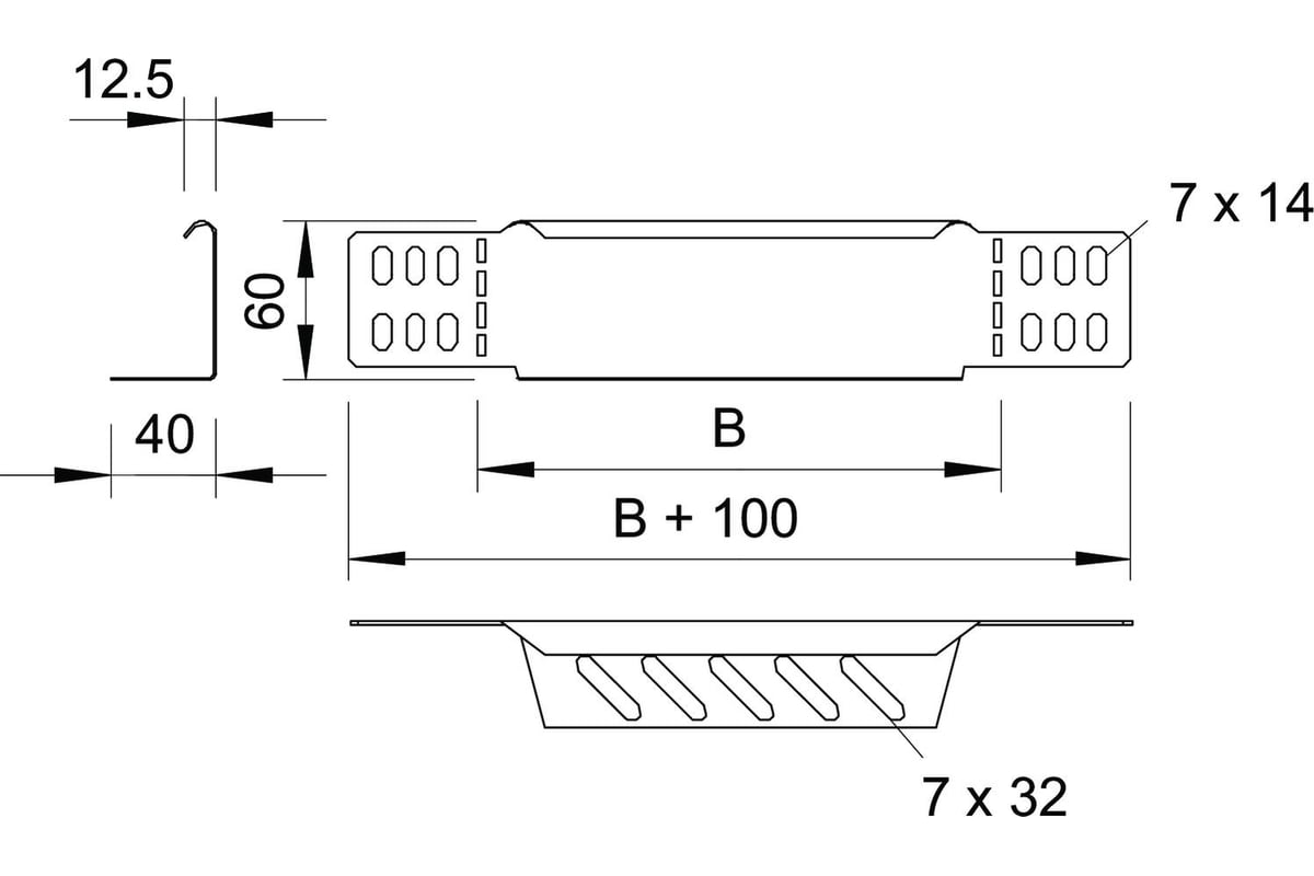 OBO Bettermann Переходник/концевик RWEB 660 DD, для листовых лотков, B=600 мм, h=60 мм, сталь, горячий цинк 7106130 Переходник/Концевик для кабельных листовых лотков