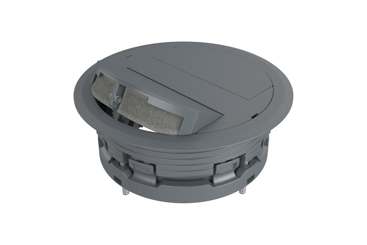 Выходное отверстие для кабелей, громмет двухсторонний ULA, диаметр D=132 мм, d=112 мм. Выполнен из полиамида с высокой прочностью и стойкостью к механическим воздействиям и истиранию при эксплуатации. Неиспользуемый кабельный вывод можно закрыть заглушкой вровень с полом. Кабельный вывод для установки в помещениях в фальшполу с сухим и влажным типом уборки по ГОСТ Р МЭК 61084-2-2-2007.